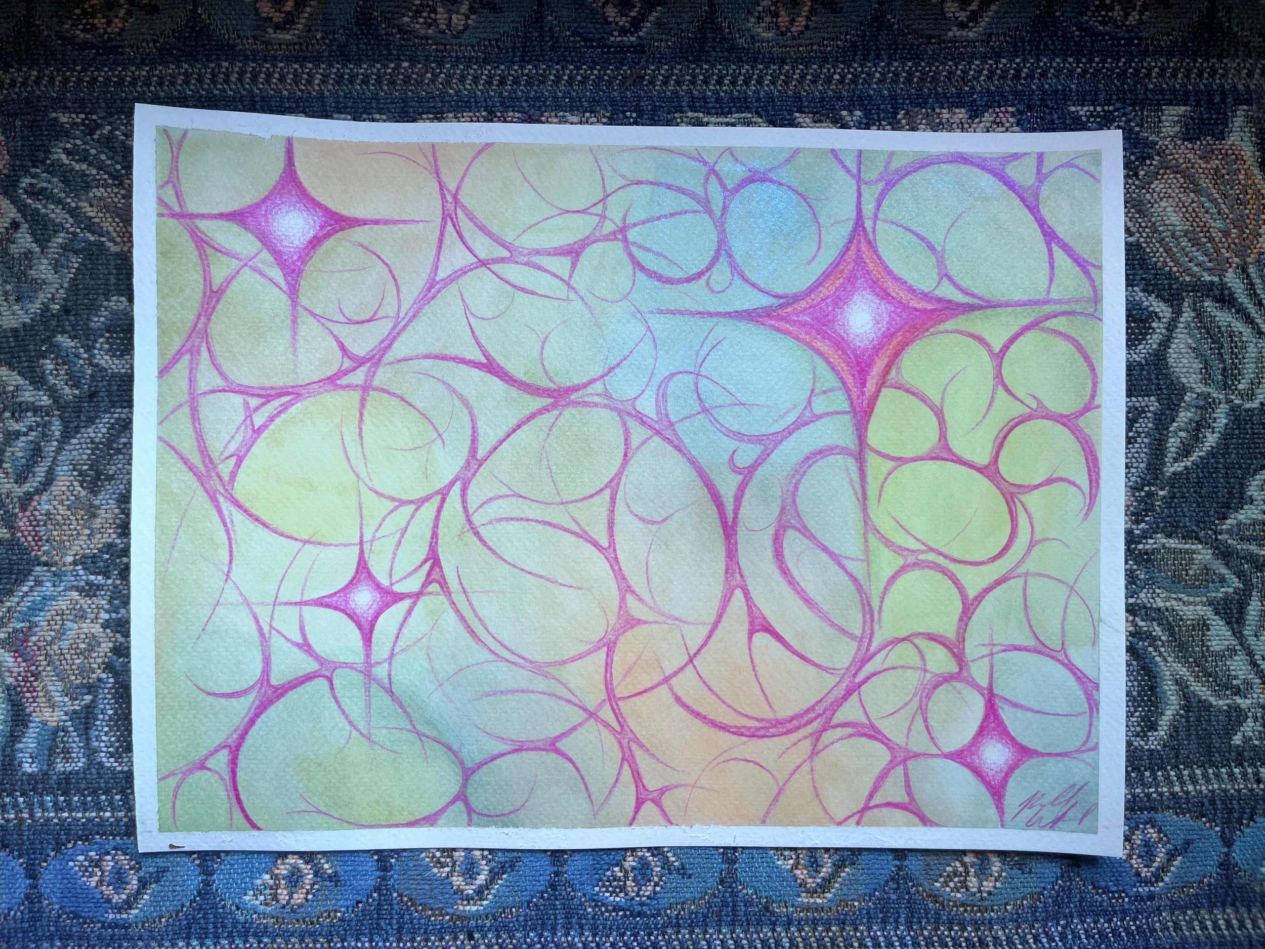 "pink stars" 8.5"x10.5" watercolor painting on paper created in 2025