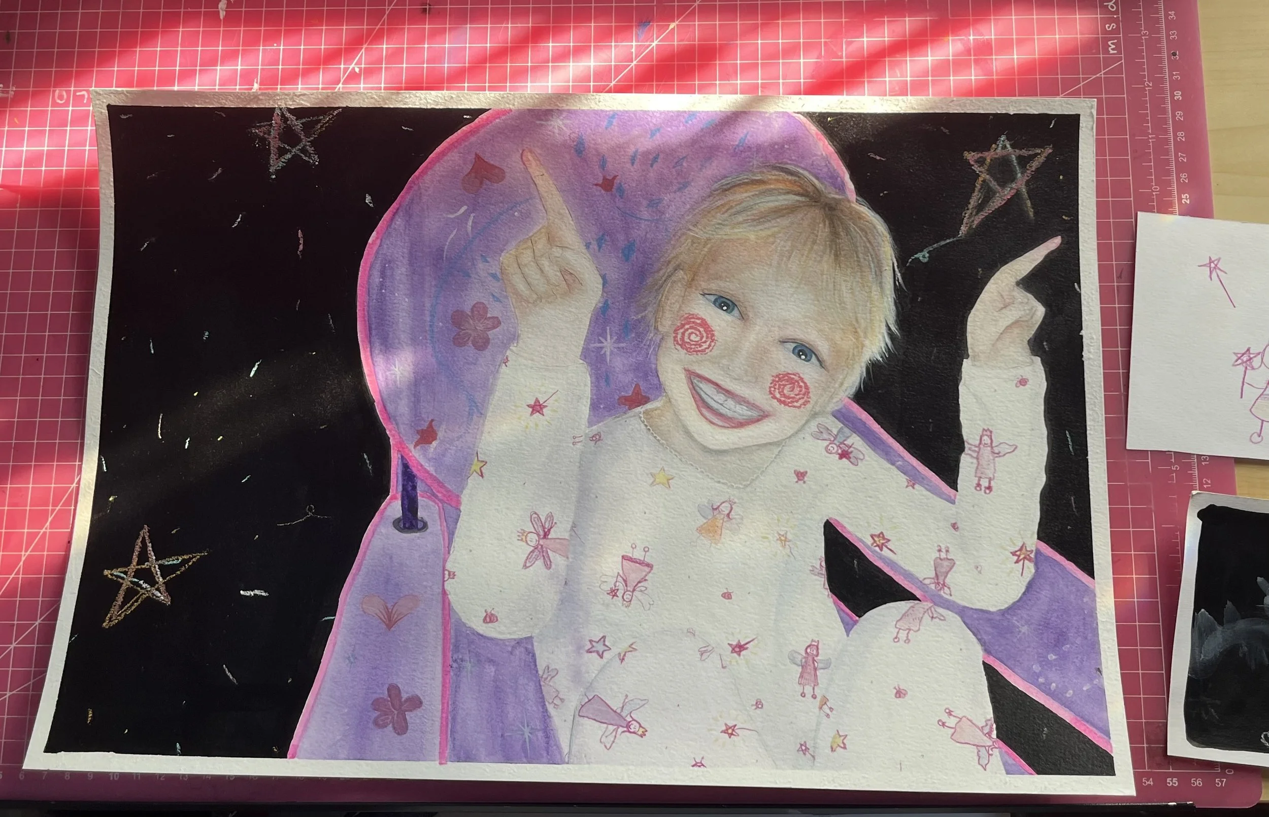 self-portrait of little me 12”x18” watercolor on paper created in 2024
